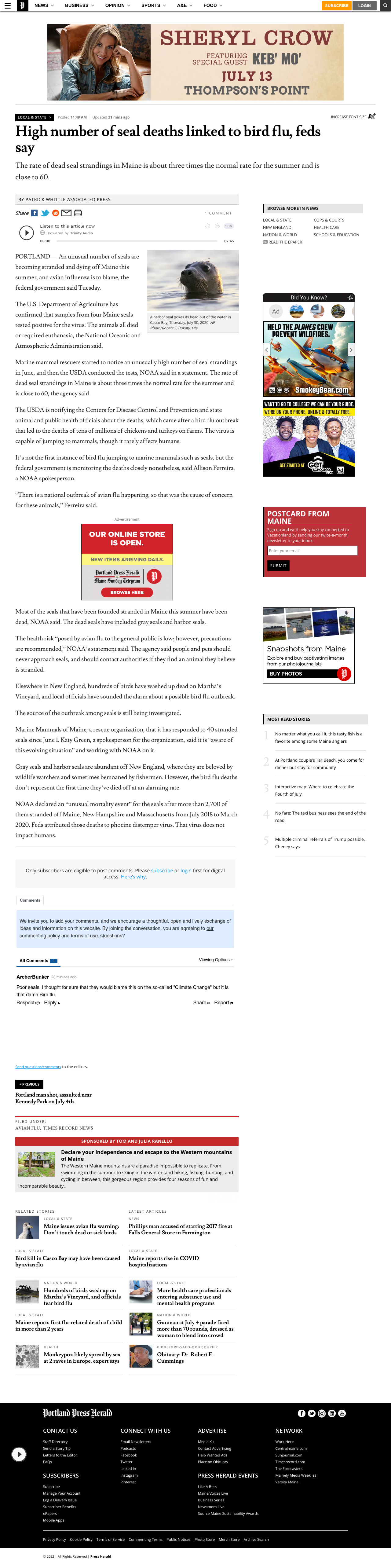 The rate of dead seal strandings in Maine is about three times the normal rate for the summer and is close to 60. Most of the seals that have been stranded this summer have been found dead, NOAA said. The dead seals have included gray seals and harbor seals.