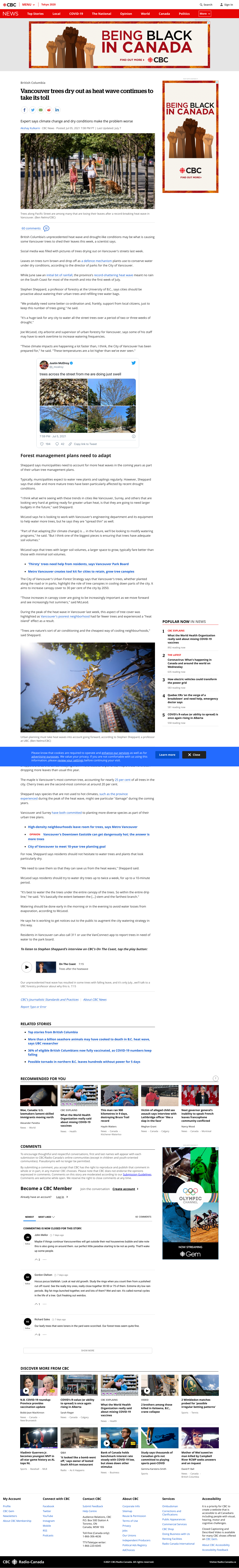 British Columbia's unprecedented heat wave and drought-like conditions may be what is causing some Vancouver trees to shed their leaves this week, a scientist says.