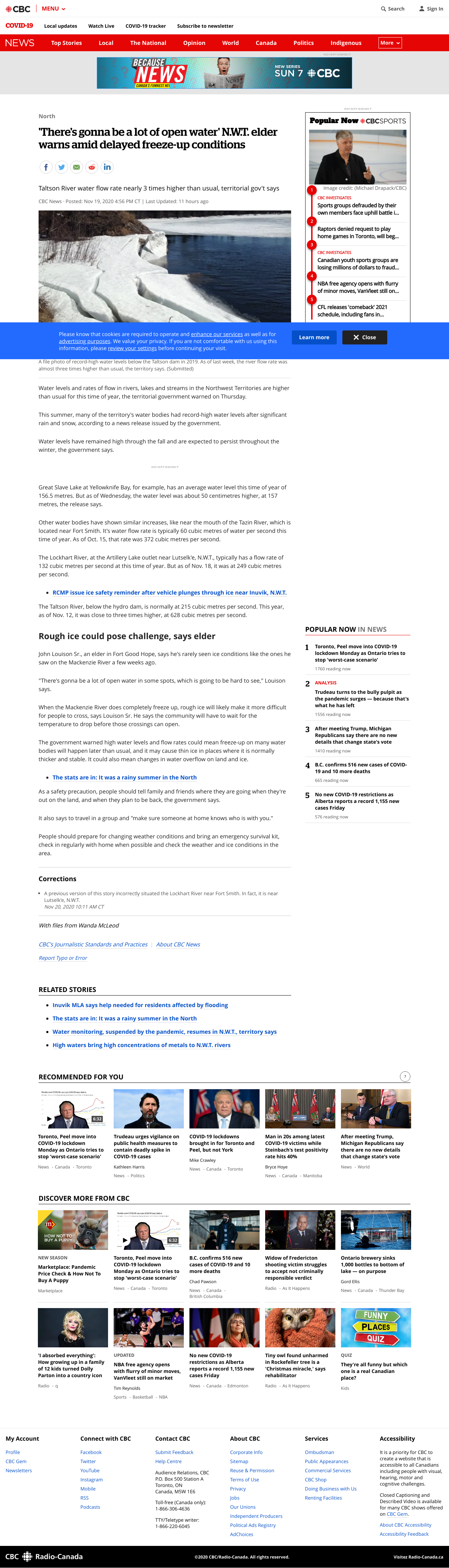 After record-high water levels and rates of flow in rivers, lakes and streams in the Northwest Territories this summer, the government is warning the problem is likely to persist into winter.