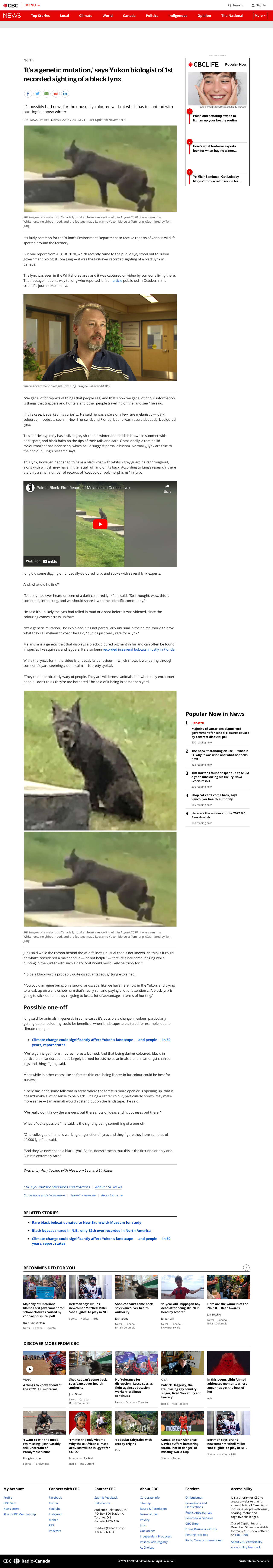 The lynx was seen in the Whitehorse area and it was captured on video by someone living there. That footage made its way to Jung who reported it in an article published in October in the scientific journal Mammalia. It was the first-ever recorded sighting of a black lynx in Canada.