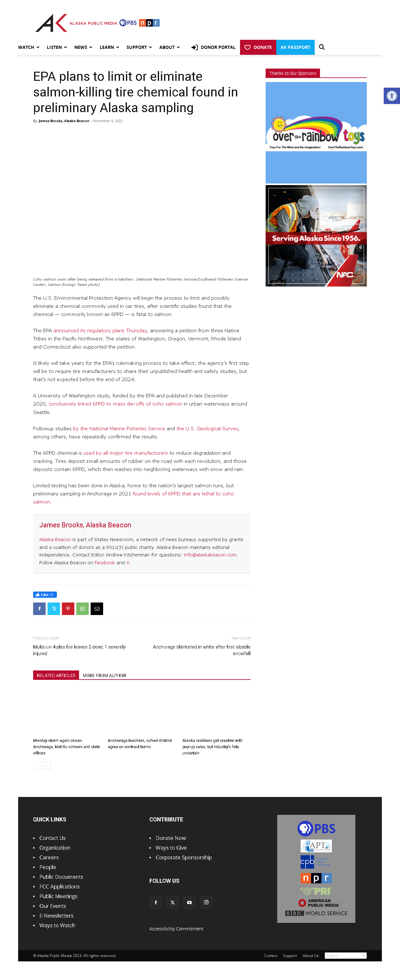 EPA plans to limit or eliminate salmon-killing tire chemical found in preliminary Alaska sampling