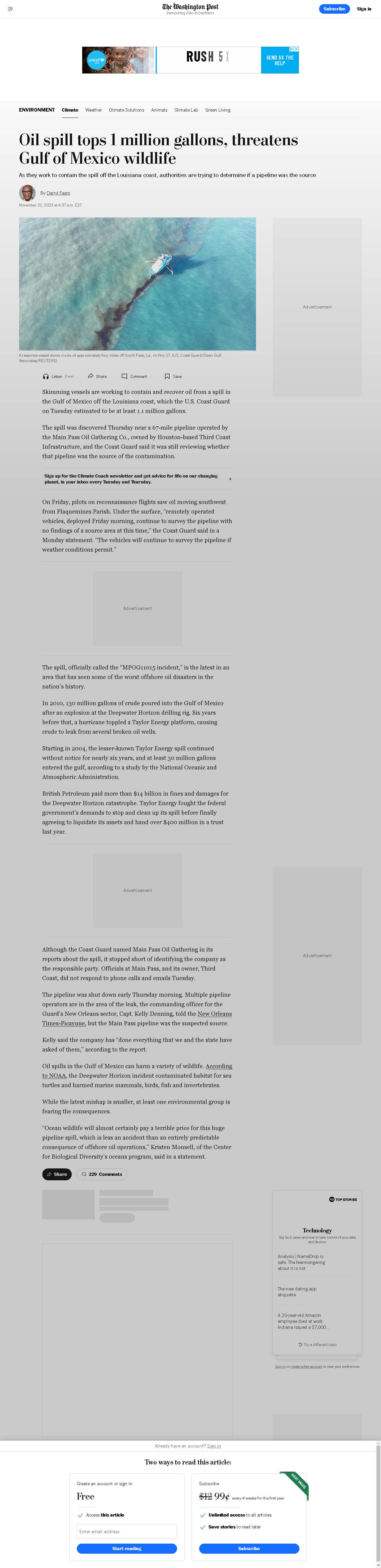 A spill from a pipeline in the Gulf of Mexico has released over 1 million gallons of oil, threatening local wildlife and prompting containment efforts.