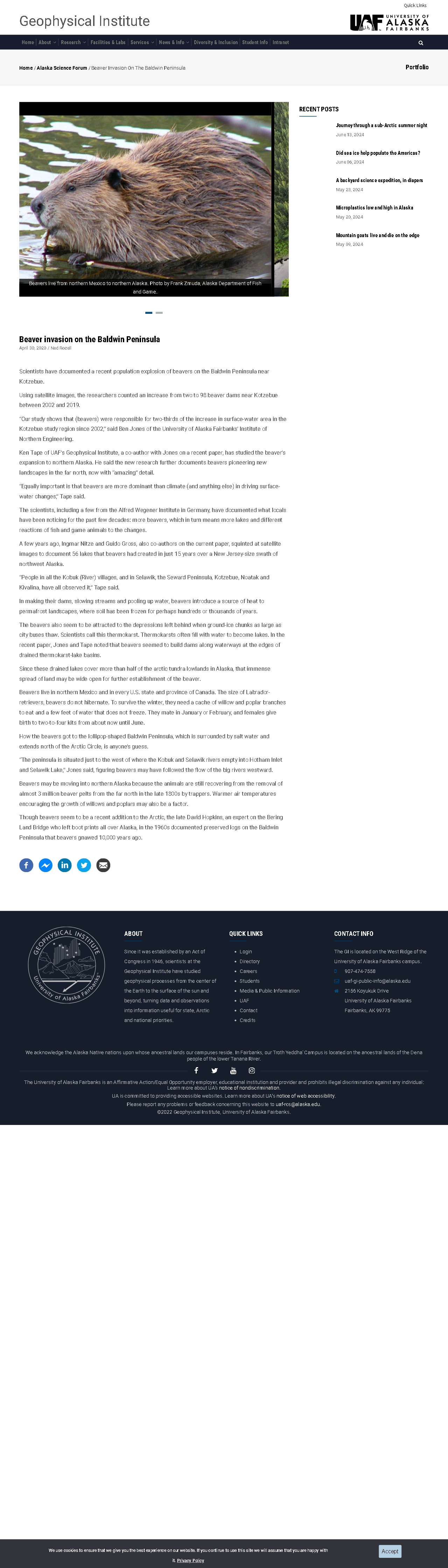 Scientists have documented a recent population explosion of beavers on the Baldwin Peninsula near Kotzebue.