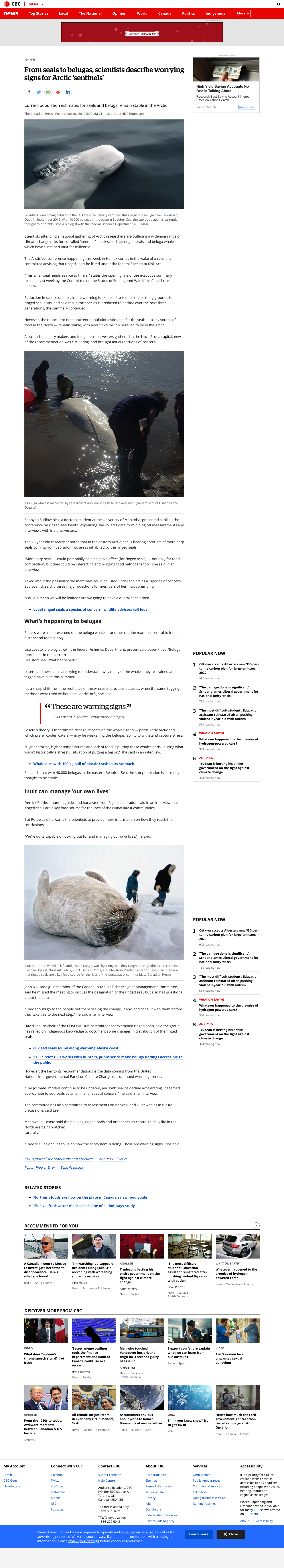 Scientists attending a national gathering of Arctic researchers are outlining a widening range of climate change risks for so-called 'sentinel' species, such as ringed seals and beluga whales, which have sustained Inuit for millennia.