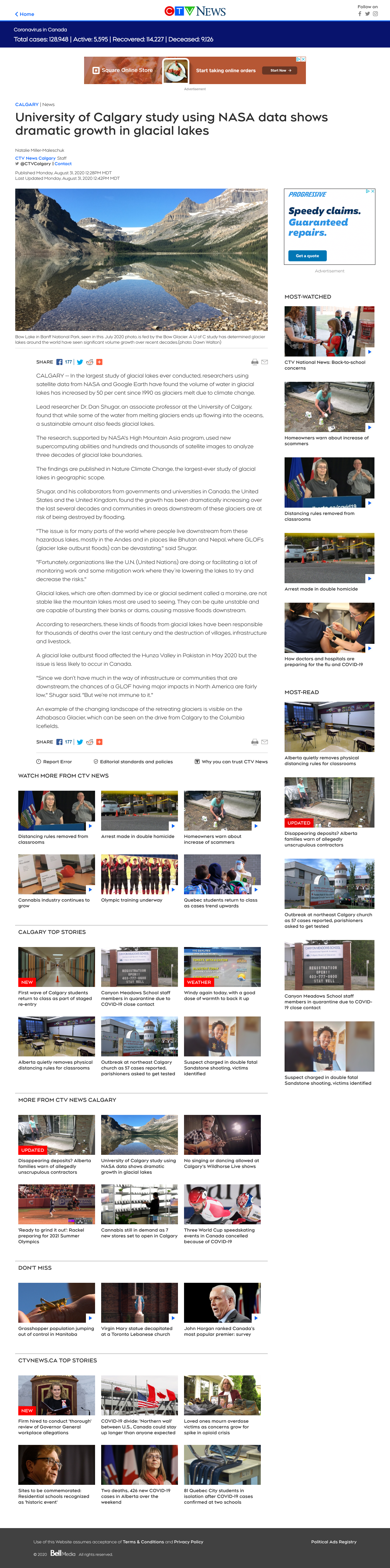 In the largest study of glacial lakes ever conducted, researchers using satellite data from NASA and Google Earth have found the volume of water in glacial lakes has increased by 50 per cent since 1990 as glaciers melt due to climate change.