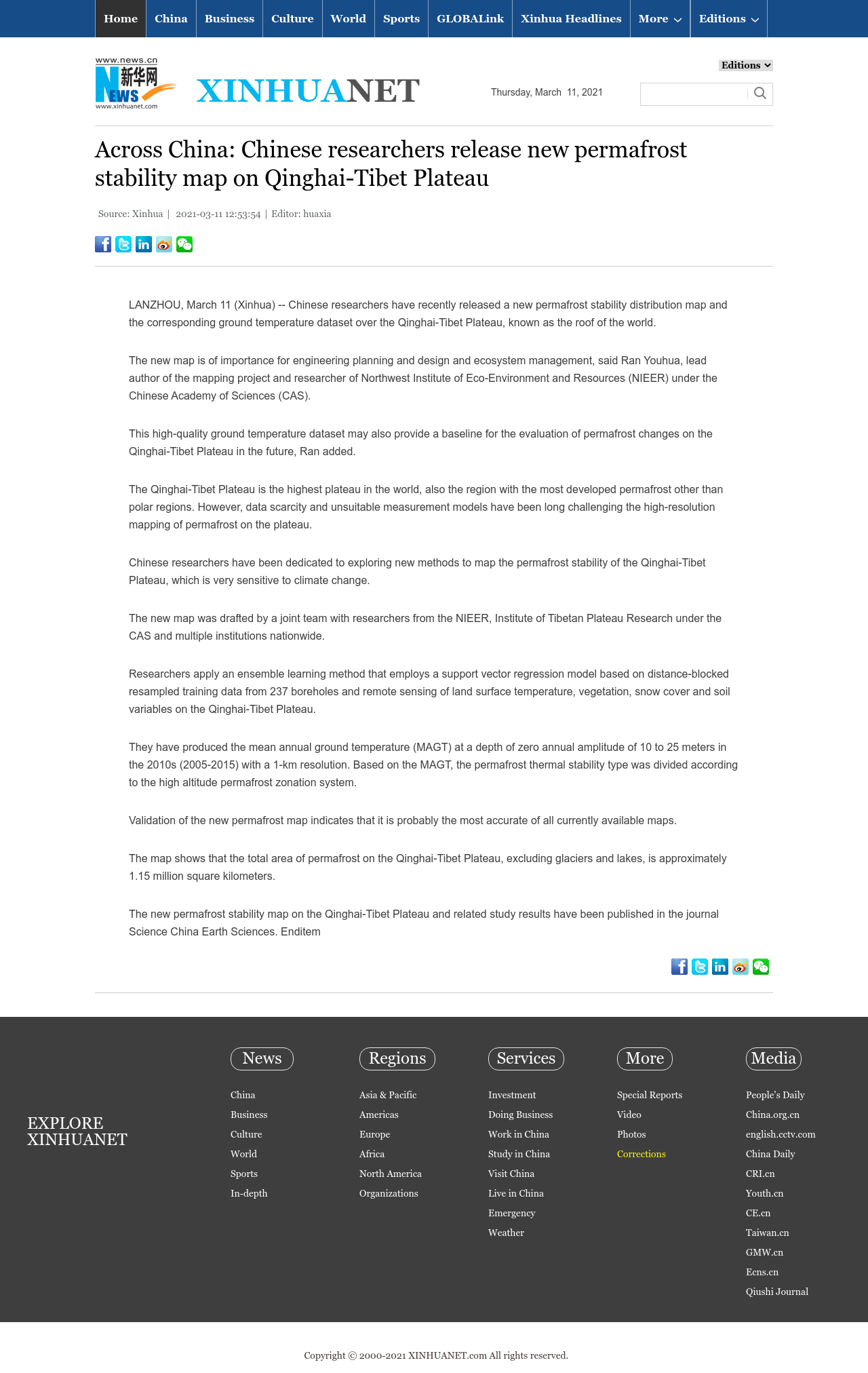 Across China: Chinese researchers release new permafrost stability map on Qinghai-Tibet Plateau