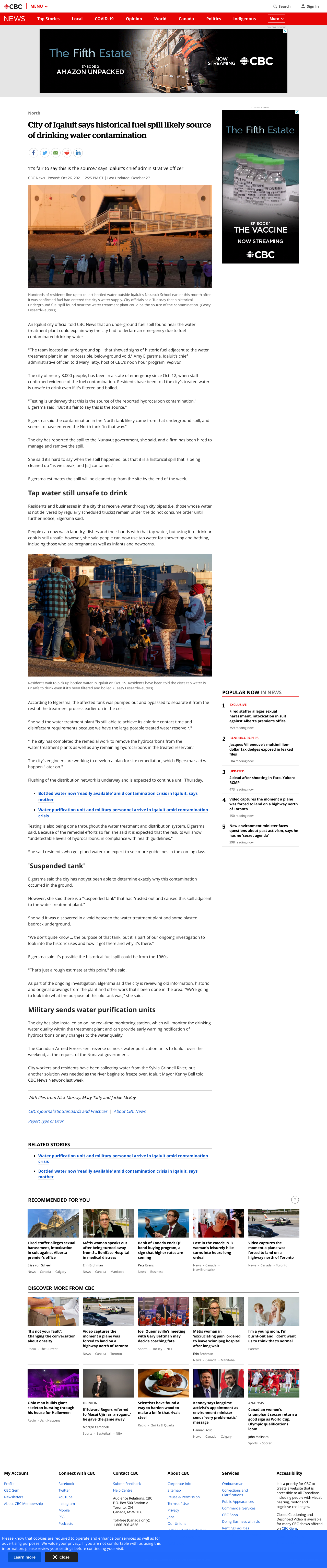 Historical fuel spill likely source of Iqaluit drinking water contamination, city official says