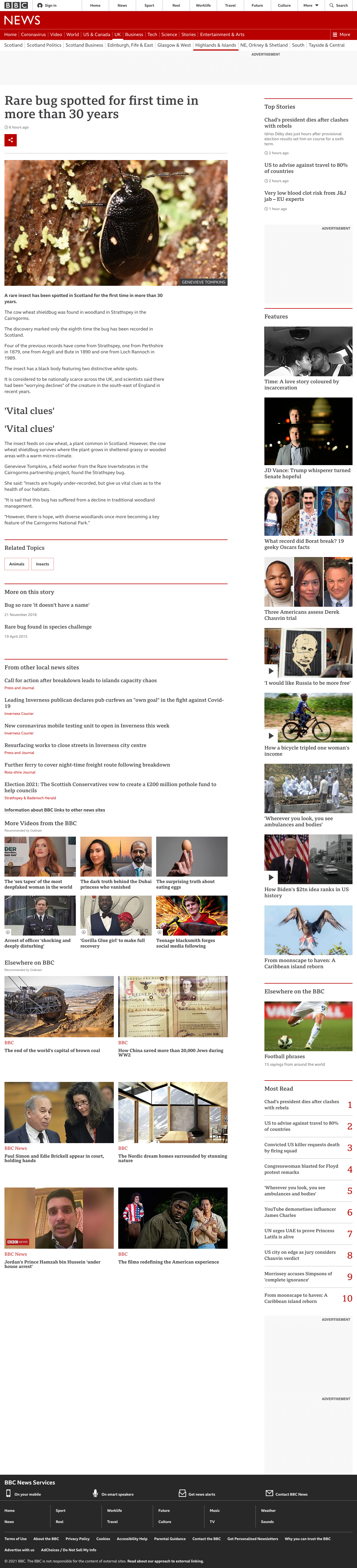 The discovery in the Cairngorms is only the eighth time a cow wheat shieldbug has been recorded in Scotland.