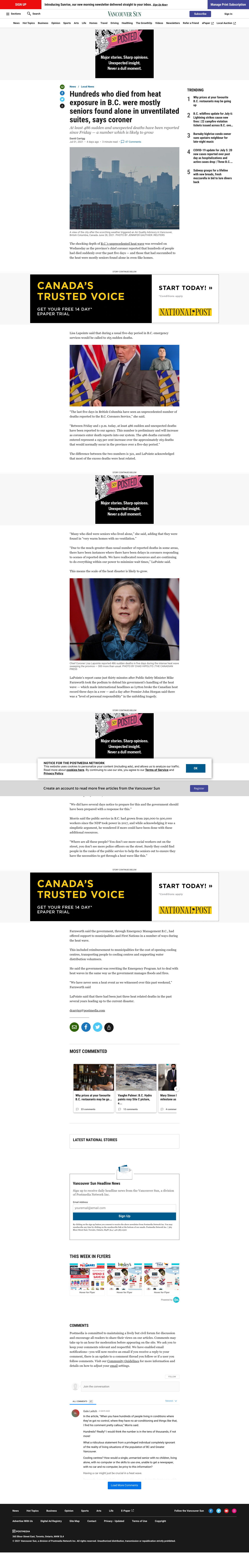 B.C. Liberals label Premier John Horgan's "level of personal responsibility" comment as callous, given the grand scale of heat wave deaths reported Wednesday