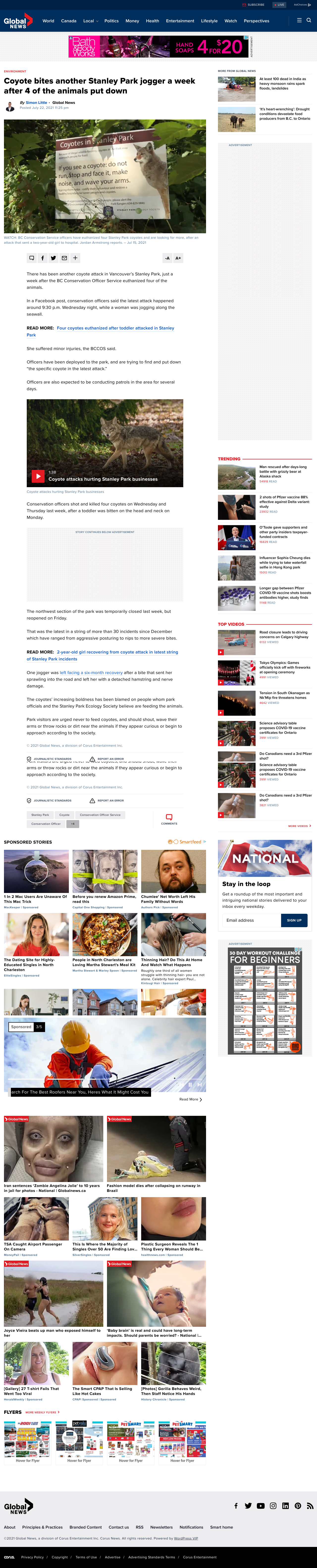 The BC Conservation Officer Service said the latest attack happened around 9:30 p.m. Wednesday night, while a woman was jogging along the seawall.