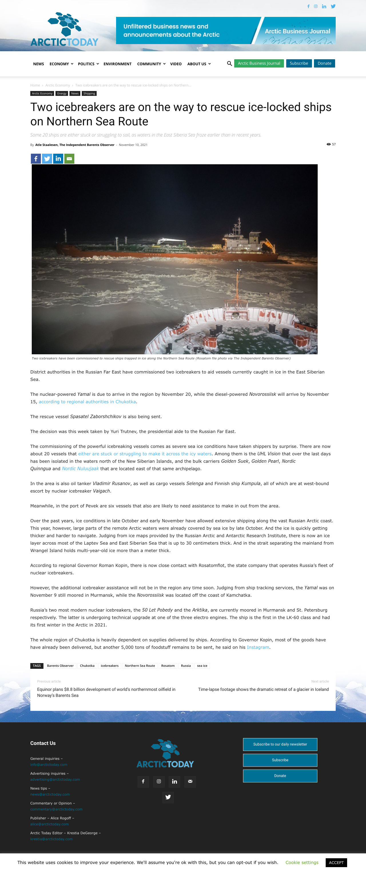 Over the past years, ice conditions in late October and early November have allowed extensive shipping along the vast Russian Arctic coast. This year, however, large parts of the remote Arctic waters were already covered by sea ice by late October.