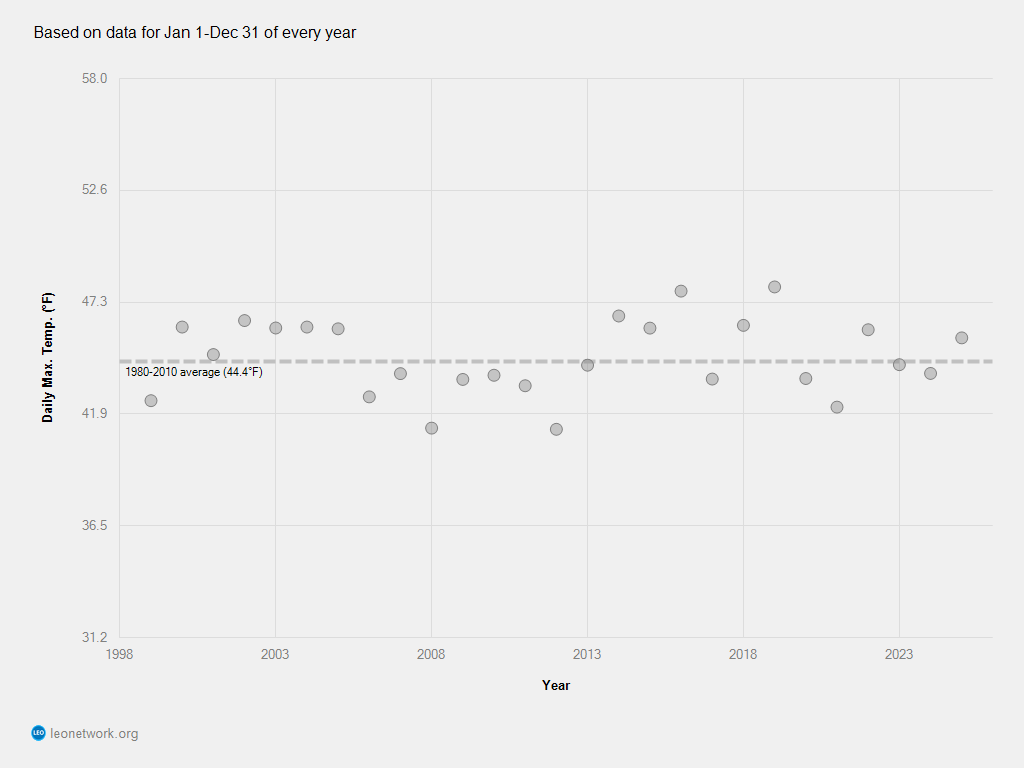 Overall, temperatures in Anchorage during 2019 were higher than normal. As of October 31st, 2019, the average annual temperature was 41 degrees Fahrenheit, which is 7.5 degrees Fahrenheit above the 1980-2010 average of 33.5 degrees Fahrenheit. In previous years, there have been warmer annual temperatures for Anchorage, but as seen on the figure below, the majority of years between 1997 and 2019 have been below the annual average temperature. Recorded daily temperatures for October 31st were also above the average high temperature for that day. Erica Lujan
