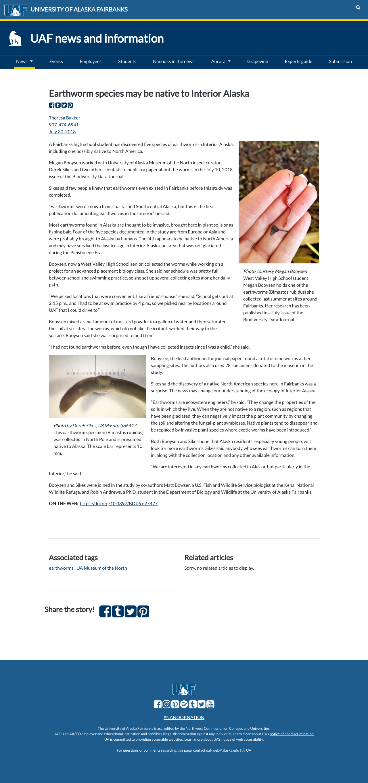 A Fairbanks high school student has discovered five species of earthworms in Interior Alaska, including one possibly native to North America.