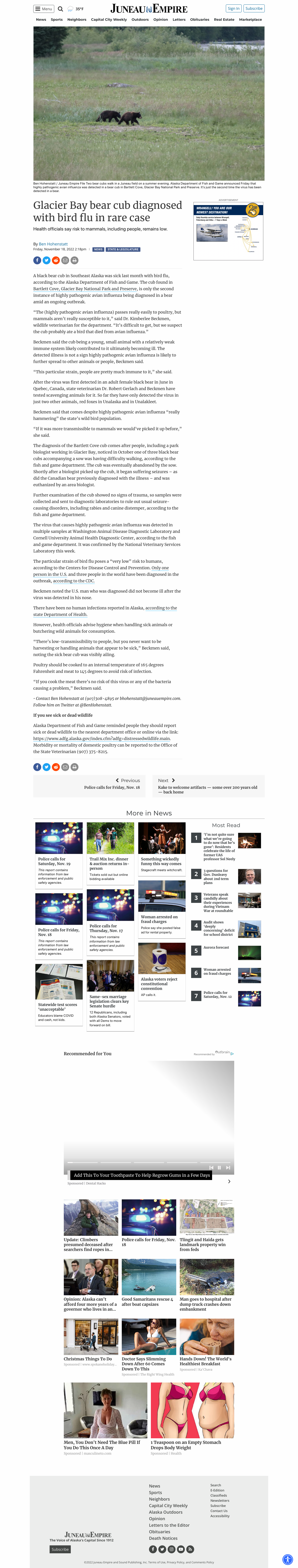 A black bear cub in Southeast Alaska was sick last month with bird flu, according to the Alaska Department of Fish and Game. The cub found in Bartlett Cove, Glacier Bay National Park and Preserve, is only the second instance of highly pathogenic avian influenza being diagnosed in a bear amid an ongoing outbreak. Health officials say risk to mammals, including people, remains low.