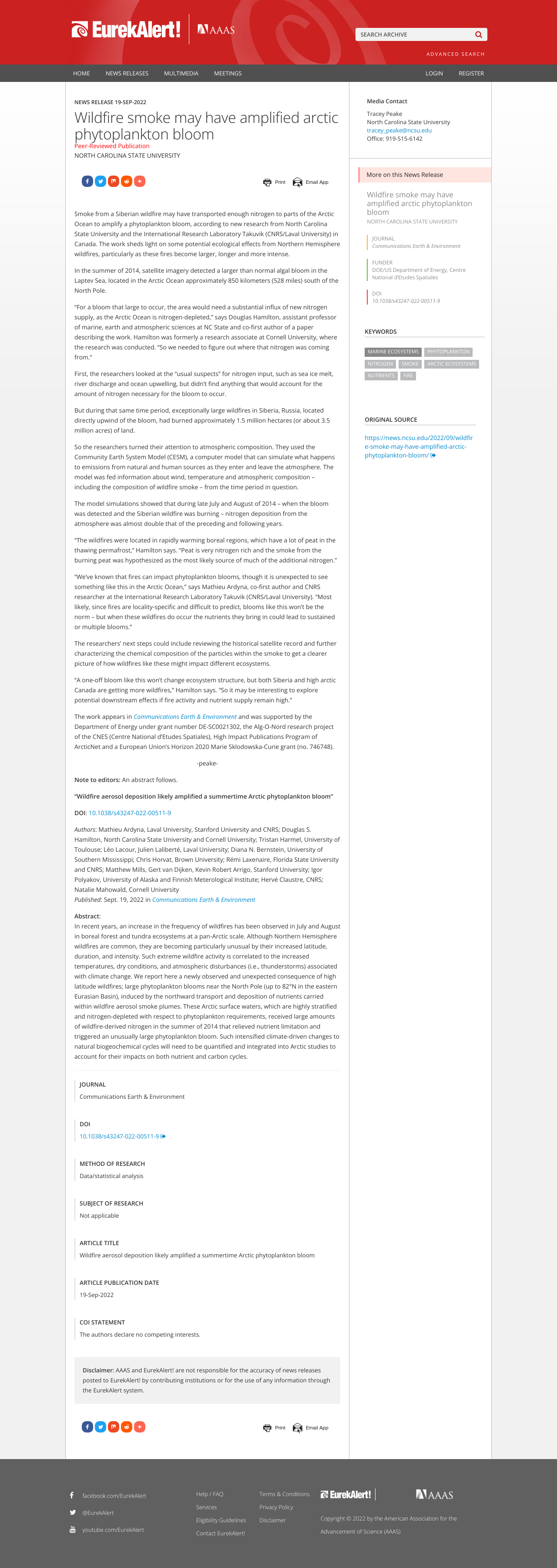 Smoke from a Siberian wildfire may have transported enough nitrogen to parts of the Arctic Ocean to amplify a phytoplankton bloom.