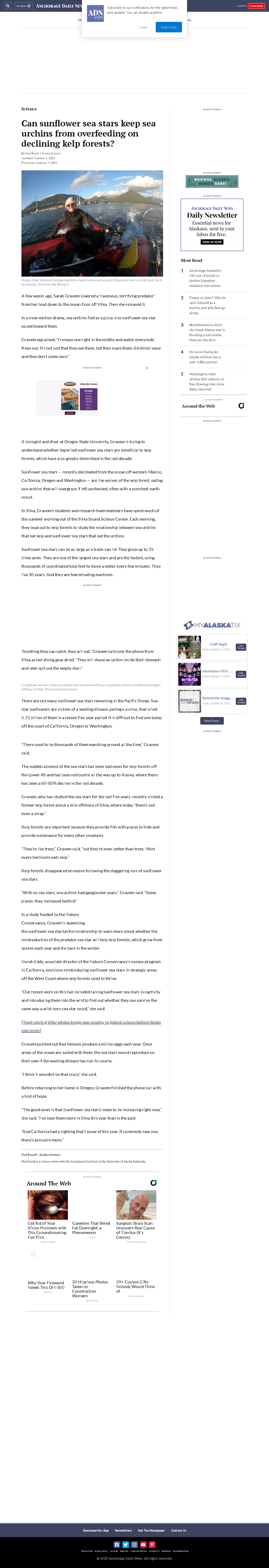 Can sunflower sea stars keep sea urchins from overfeeding on declining kelp forests?