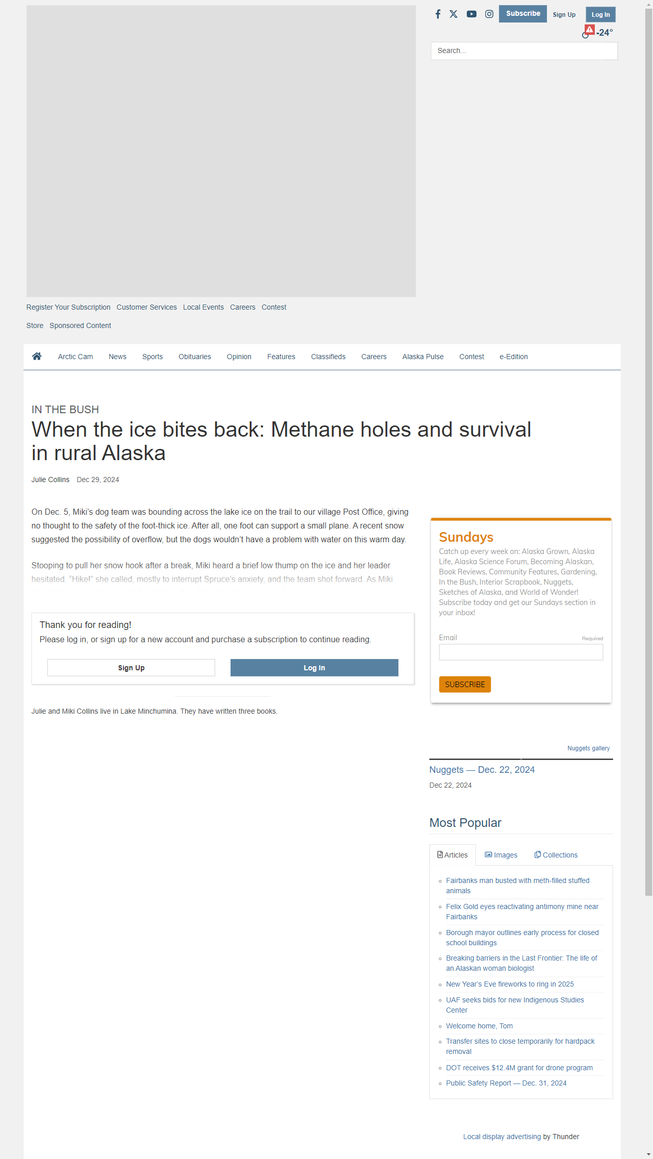 Methane holes have become a hazard in rural Alaska, with increased frequency possibly linked to the 2002 Denali Fault earthquake. These holes form under ice due to methane gas bubbles and can pose significant dangers to locals and their animals.