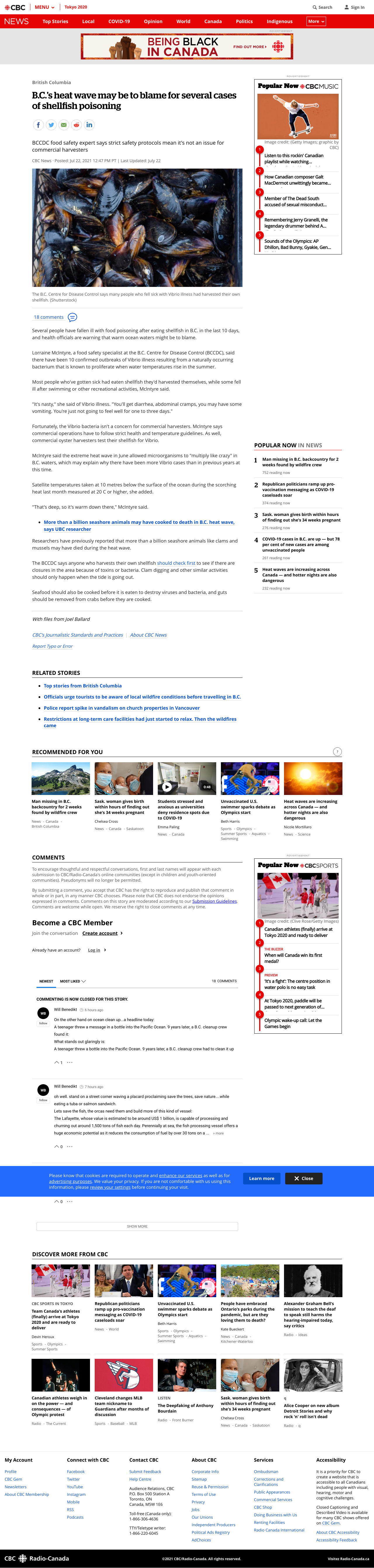 Several people have fallen ill with food poisoning after eating shellfish in B.C. in the last 10 days, and health officials are warning that warm ocean waters might be to blame.
