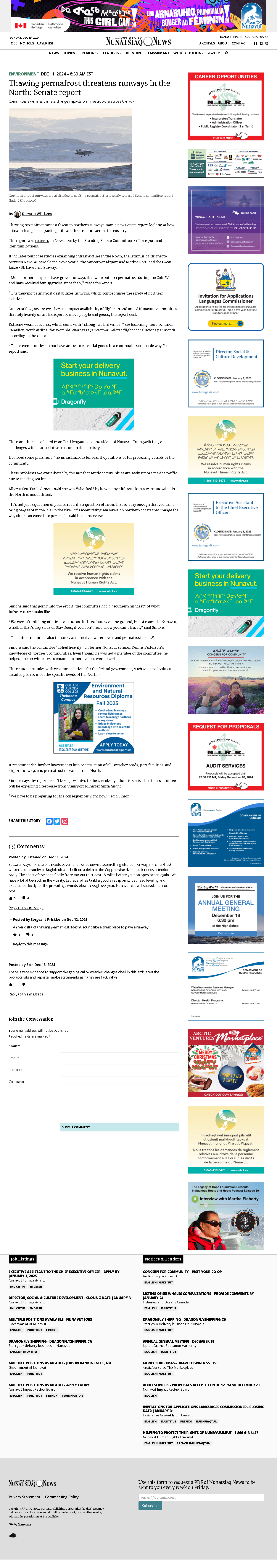 A new Senate report highlights that thawing permafrost is destabilizing northern runways in Canada, posing a threat to aviation safety as climate change impacts critical infrastructure.
