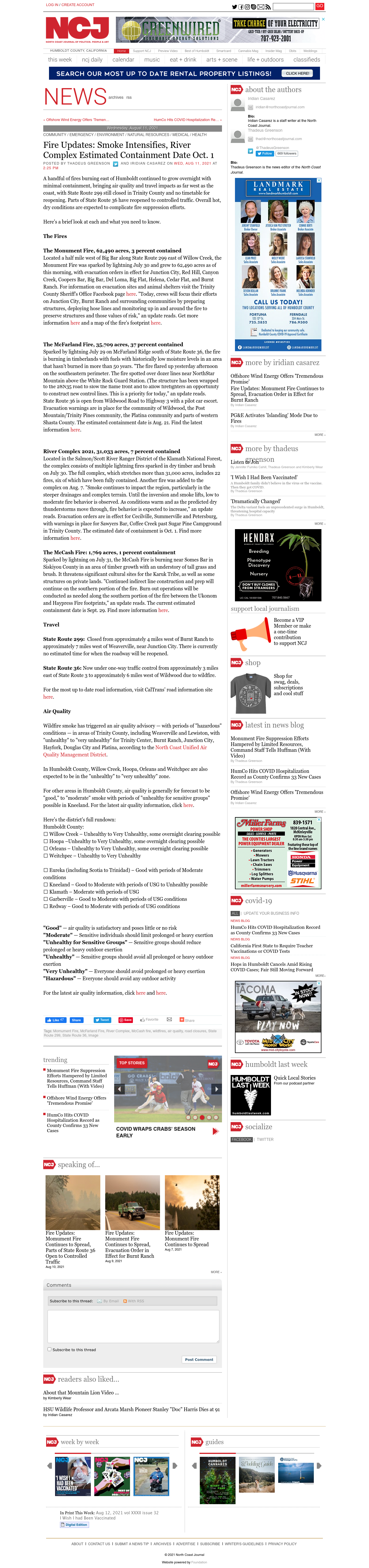 Fire Updates: Smoke Intensifies, River Complex Estimated Containment Date Oct. 1