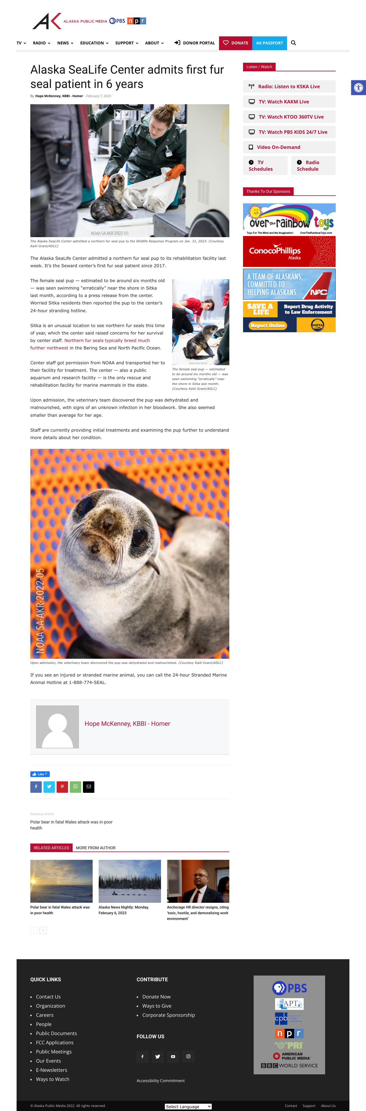 The female seal pup — estimated to be around six months old — was seen swimming “erratically” near the shore in Sitka last month, according to a press release from the center. Worried Sitka residents then reported the pup to the center’s 24-hour stranding hotline.