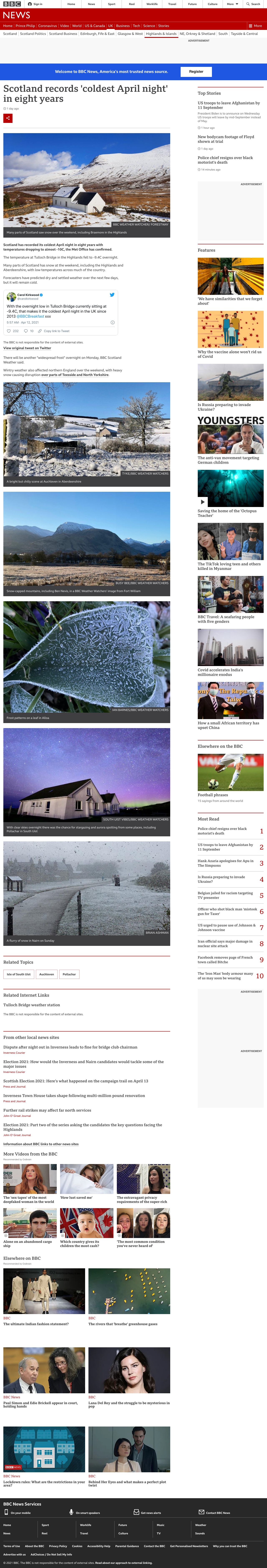 Many parts of Scotland had snow over the weekend, including the Highlands and Aberdeenshire, with low temperatures across much of the country. Temperatures dipped to -9.4C overnight at Tulloch Bridge in the Highlands.