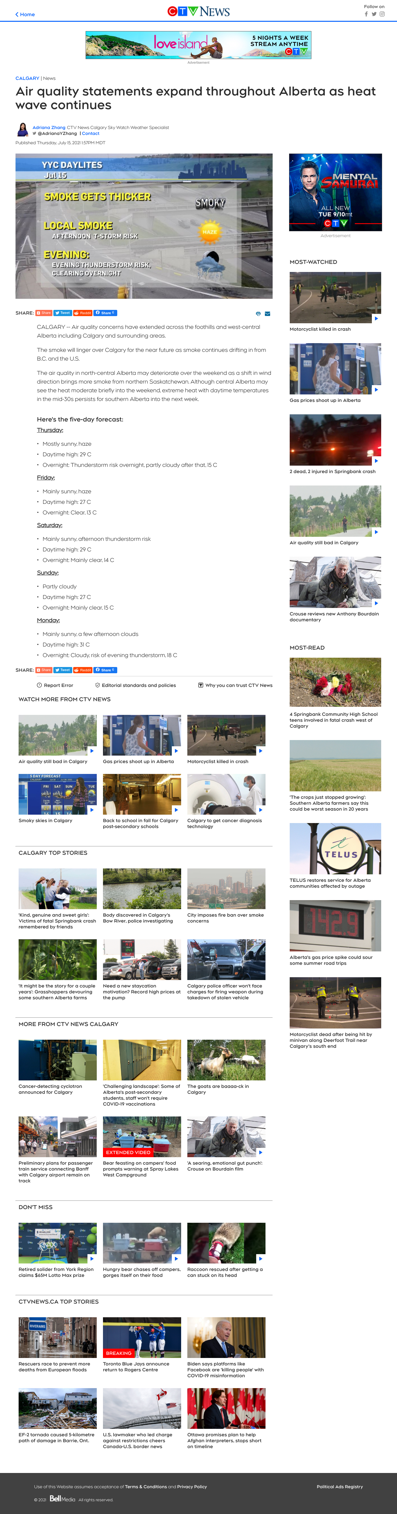 Air quality concerns have extended across the foothills and west-central Alberta including Calgary and surrounding areas.