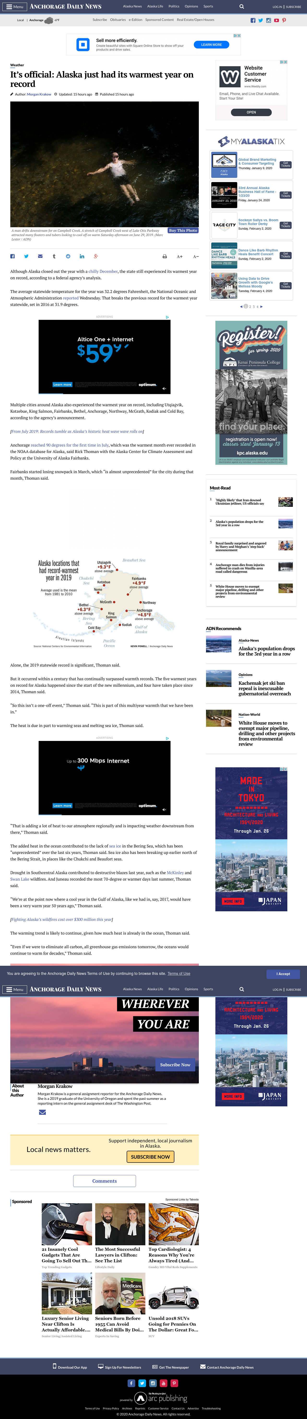 The average statewide temperature for the year was 32.2 degrees Fahrenheit, the National Oceanic and Atmospheric Administration reported Wednesday. That breaks the previous record for the warmest year statewide, set in 2016 at 31.9 degrees.