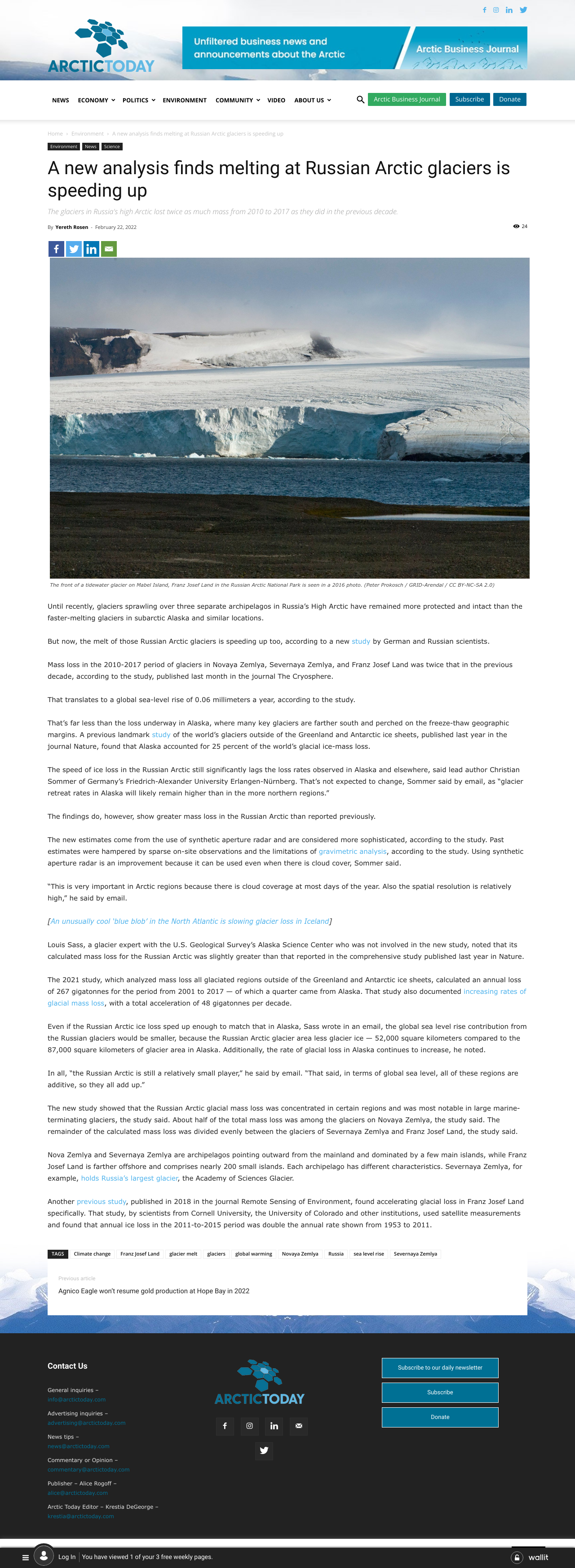Until recently, glaciers sprawling over three separate archipelagos in Russia’s High Arctic have remained more protected and intact than the faster-melting glaciers in subarctic Alaska and similar locations. But now, the melt of those Russian Arctic glaciers is speeding up too, according to a new study by German and Russian scientists.
