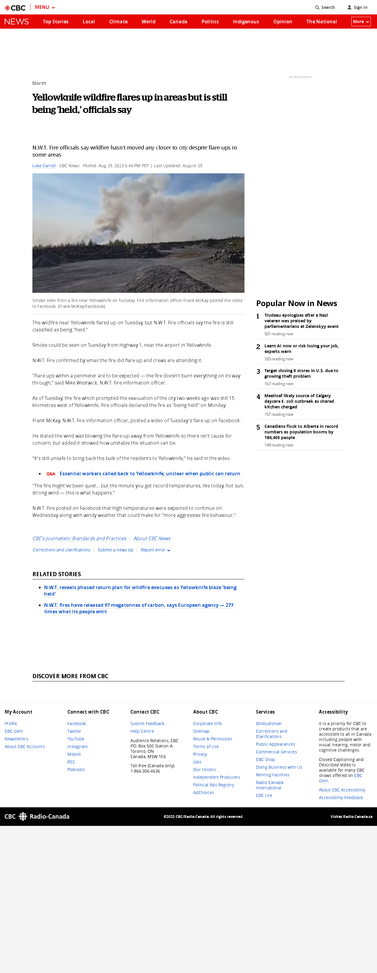 As of Tuesday, the fire which prompted the evacuation of the city two weeks ago was still 15 kilometres west of Yellowknife. Fire officials declared the fire as "being held" on Monday. According to N.W.T. Fire information officer, it's still unsafe to bring back the bulk of the residents to Yellowknife.