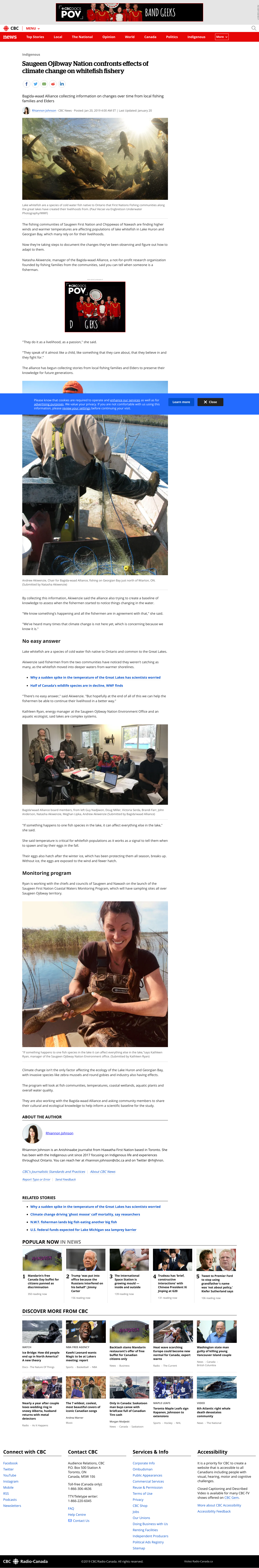 The fishing communities of Saugeen First Nation and Chippewas of Nawash are finding higher winds and warmer temperatures are affecting populations of lake whitefish in Lake Huron and Georgian Bay, which many rely on for their livelihoods.