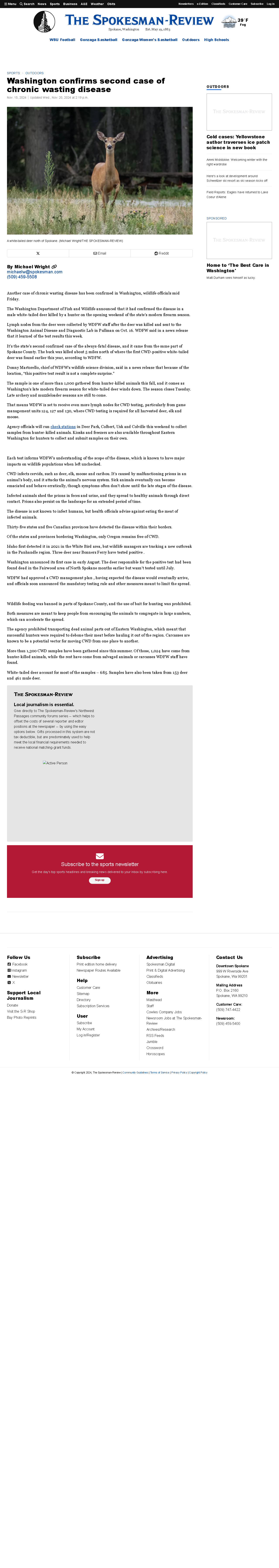 A second case of chronic wasting disease (CWD) has been confirmed in Washington, detected in a white-tailed deer in Spokane County. This follows the first case earlier in the year.