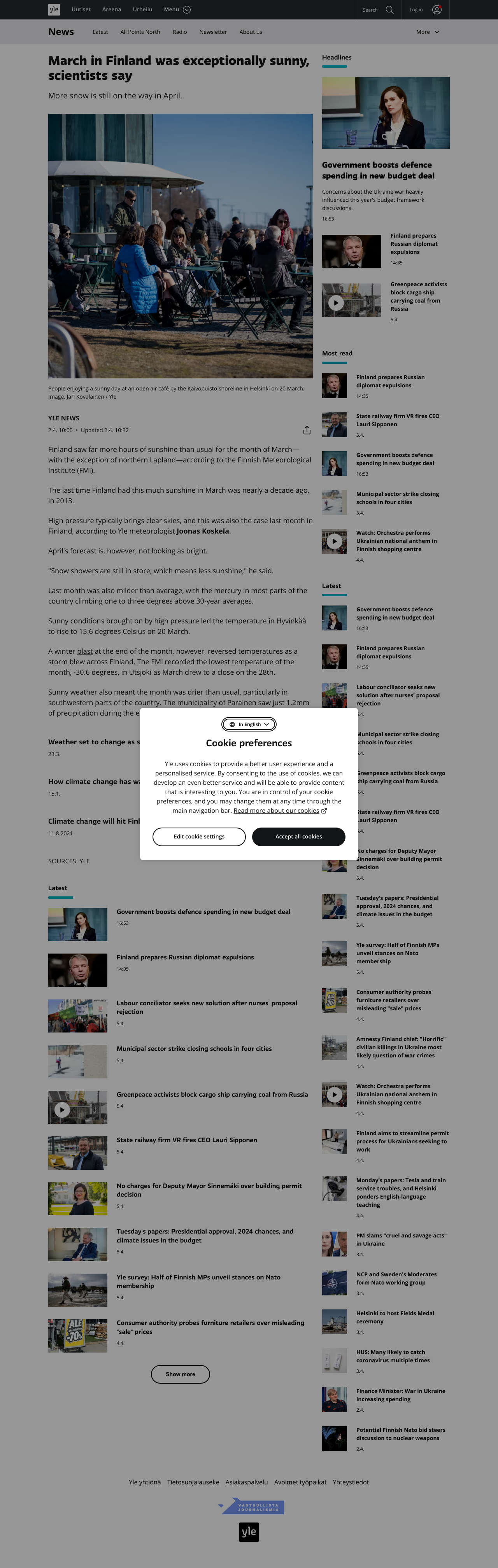 The last time Finland had this much sunshine in March was nearly a decade ago, in 2013. High pressure typically brings clear skies, and this was also the case last month in Finland.
