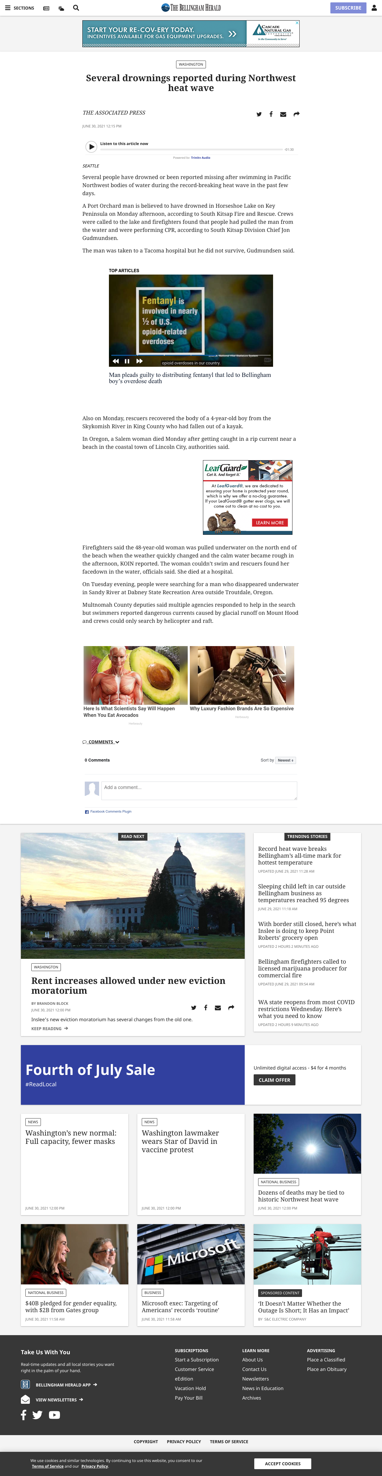 Several people have drowned or been reported missing after swimming in Pacific Northwest bodies of water during the record-breaking heat wave in the past few days.