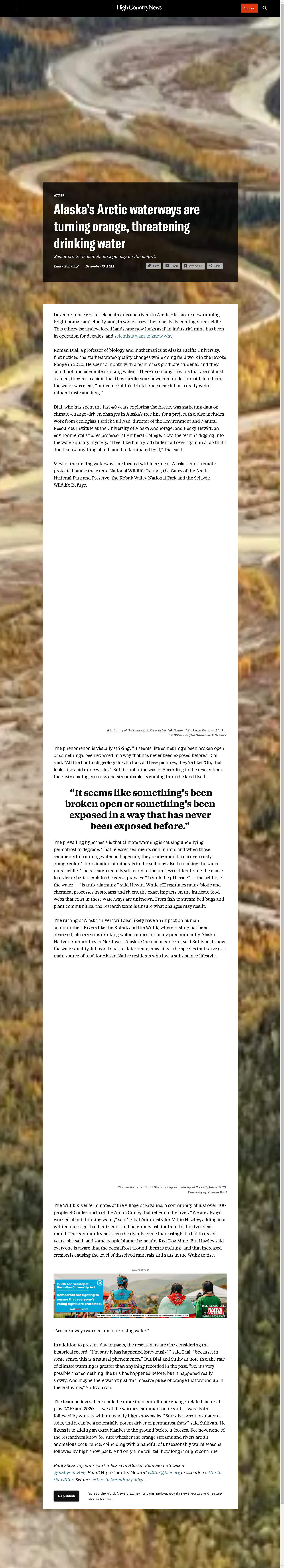 Dozens of once crystal-clear streams and rivers in Arctic Alaska are now running bright orange and cloudy, and, in some cases, they may be becoming more acidic. This otherwise undeveloped landscape now looks as if an industrial mine has been in operation for decades, and scientists want to know why.