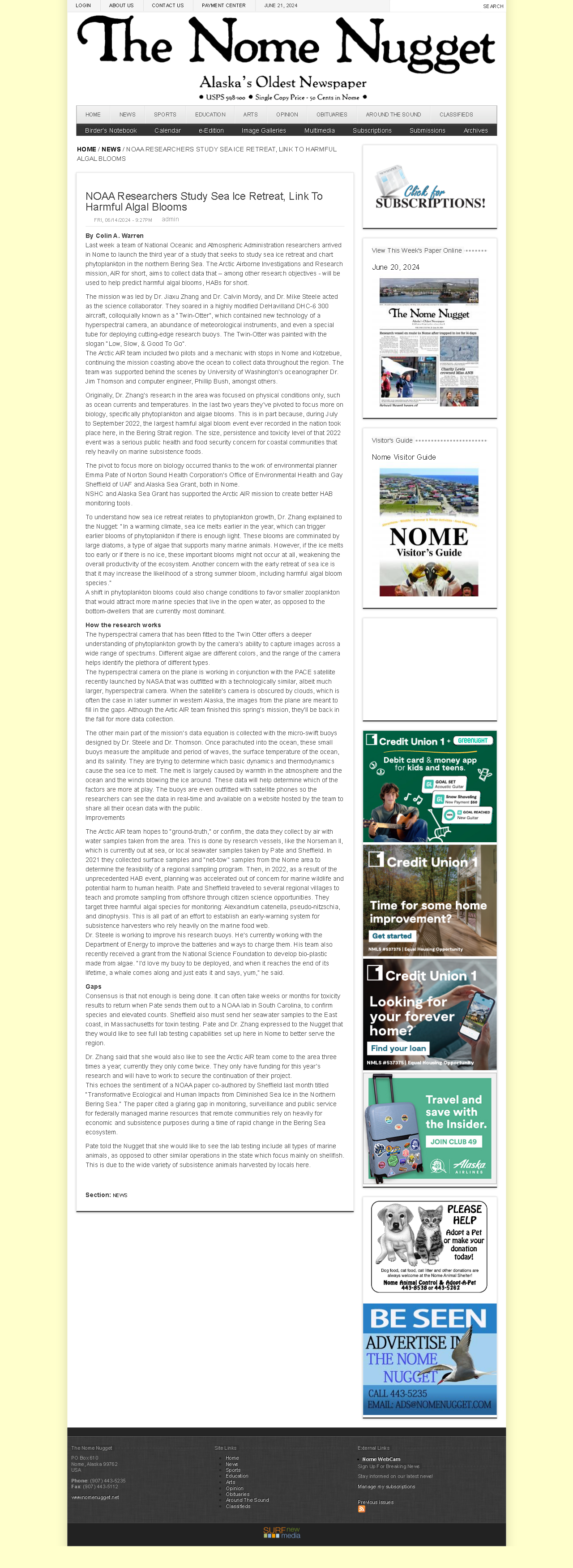 NOAA researchers are studying the connection between sea ice retreat and harmful algal blooms in the Bering Sea, aiming to improve prediction and monitoring tools for these events that pose risks to public health and marine ecosystems.