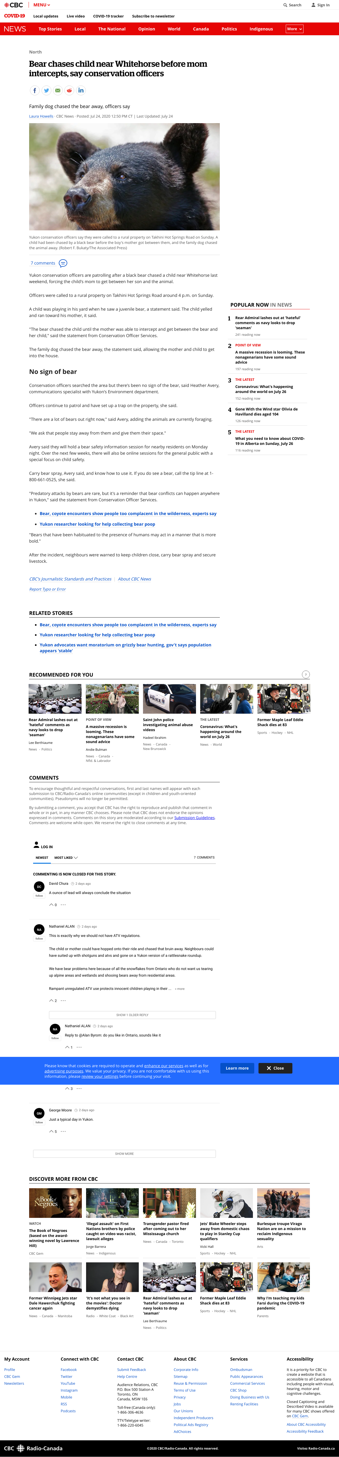Yukon conservation officers are patrolling after a black bear chased a child near Whitehorse last weekend. The boy's mom managed to get between her child and the animal.