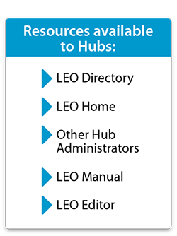 There are several resources available to assist with the operation and maintenance of hubs. One of the most important is the LEO Directory, which is continually growing and can be used to identify members with regional or topical expertise.