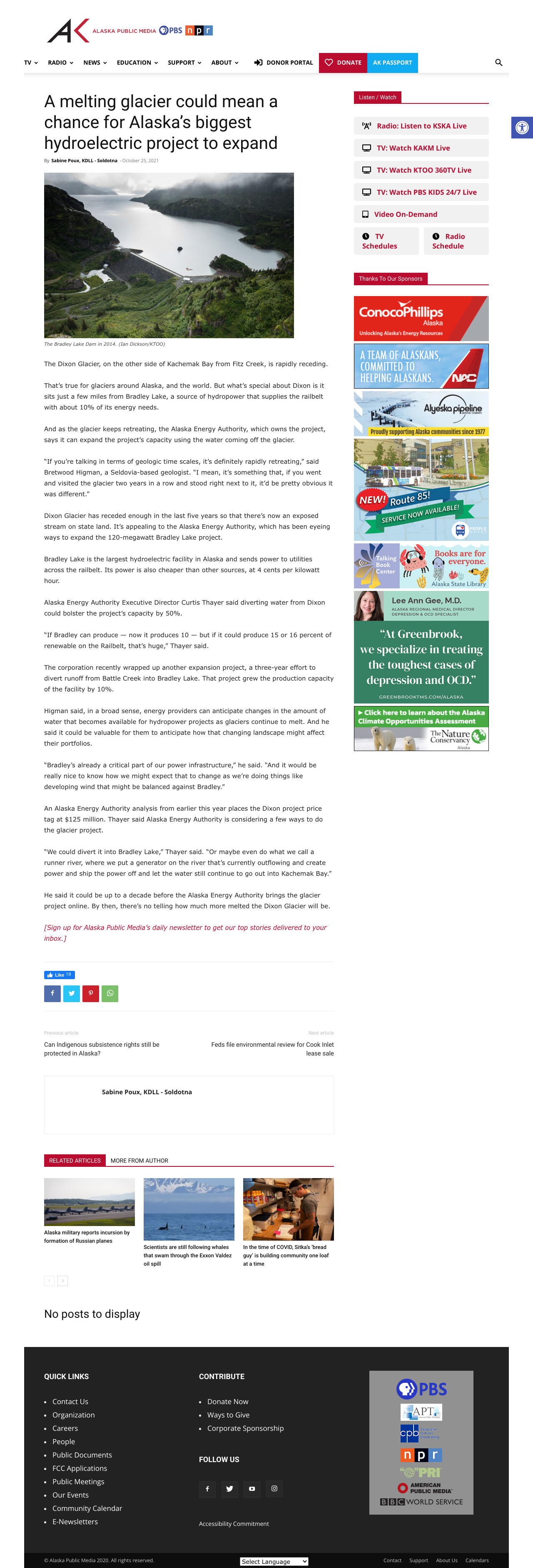 The Dixon Glacier, on the other side of Kachemak Bay from Fitz Creek, is rapidly receding. That’s true for glaciers around Alaska, and the world. But what’s special about Dixon is it sits just a few miles from Bradley Lake, a source of hydropower that supplies the railbelt with about 10% of its energy needs.