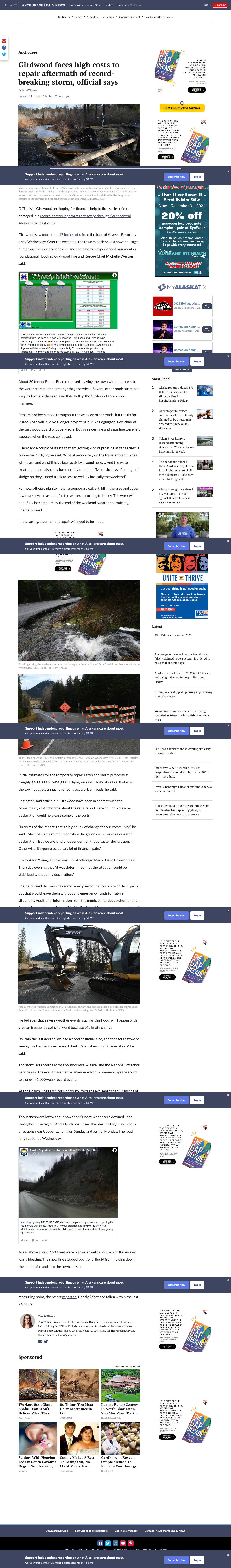 The temporary repairs would consume about 60% of the town’s annual budget for contract work on roads, a Girdwood official said.