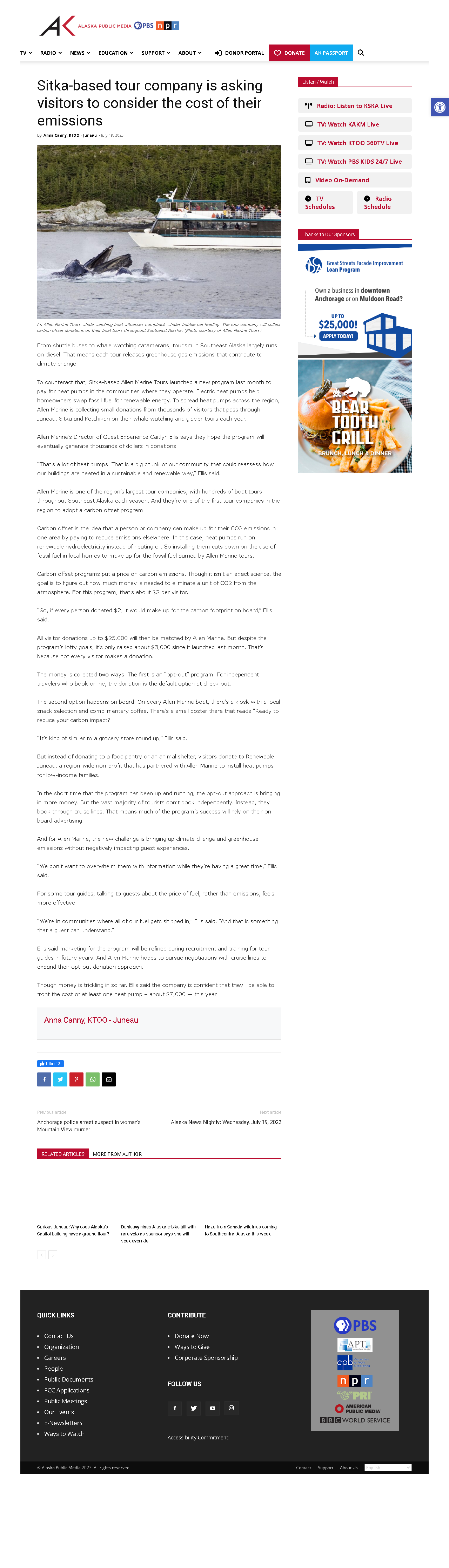 Sitka-based tour company is asking visitors to consider the cost of their emissions