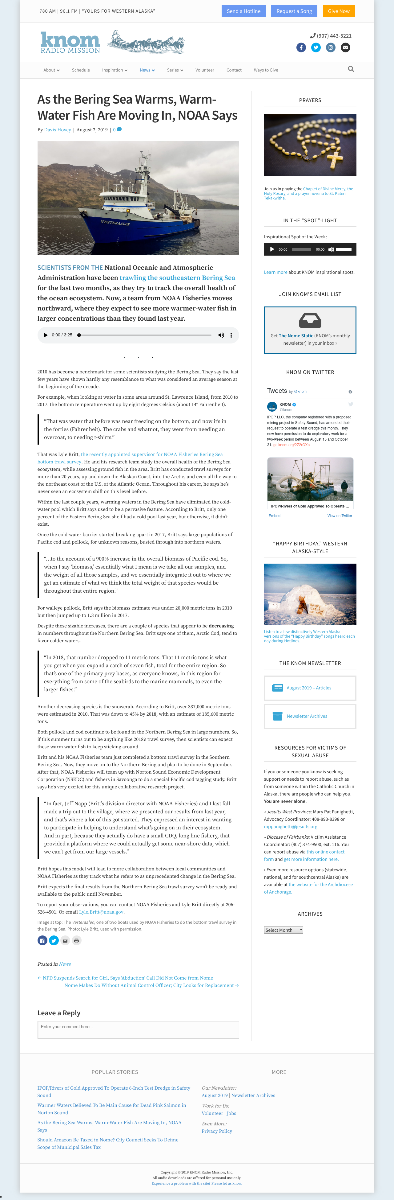 For example, when looking at water in some areas around St. Lawrence Island, from 2010 to 2017, the bottom temperature went up by eight degrees Celsius (about 14° Fahrenheit).