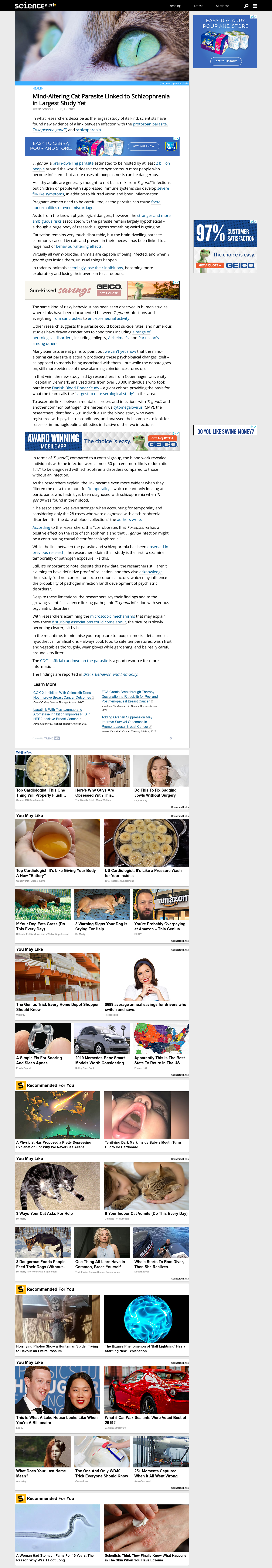 In what researchers describe as the largest study of its kind, scientists have found new evidence of a link between infection with the protozoan parasite, Toxoplasma gondii, and schizophrenia.
