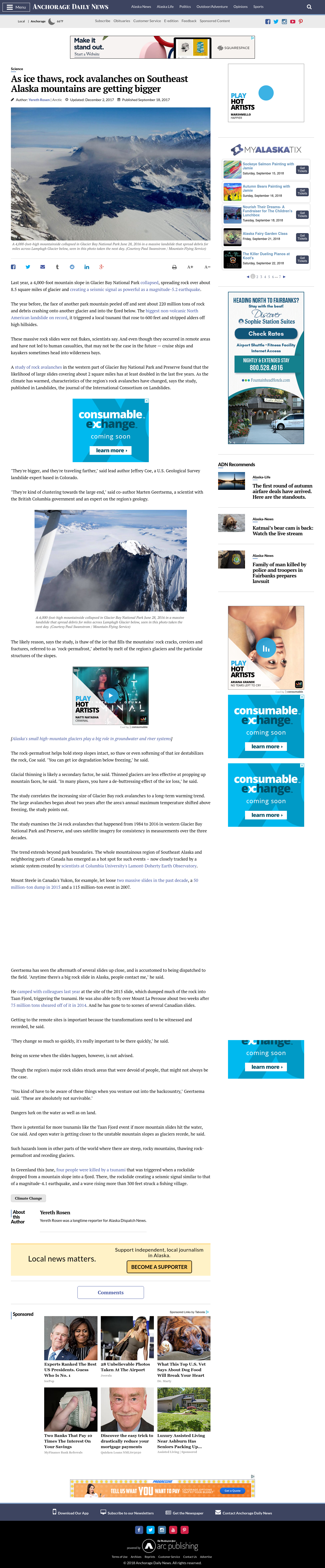 A study of rock avalanches in the western part of Glacier Bay National Park and Preserve found that the likelihood of large slides covering about 2 square miles has at least doubled in the last five years.
