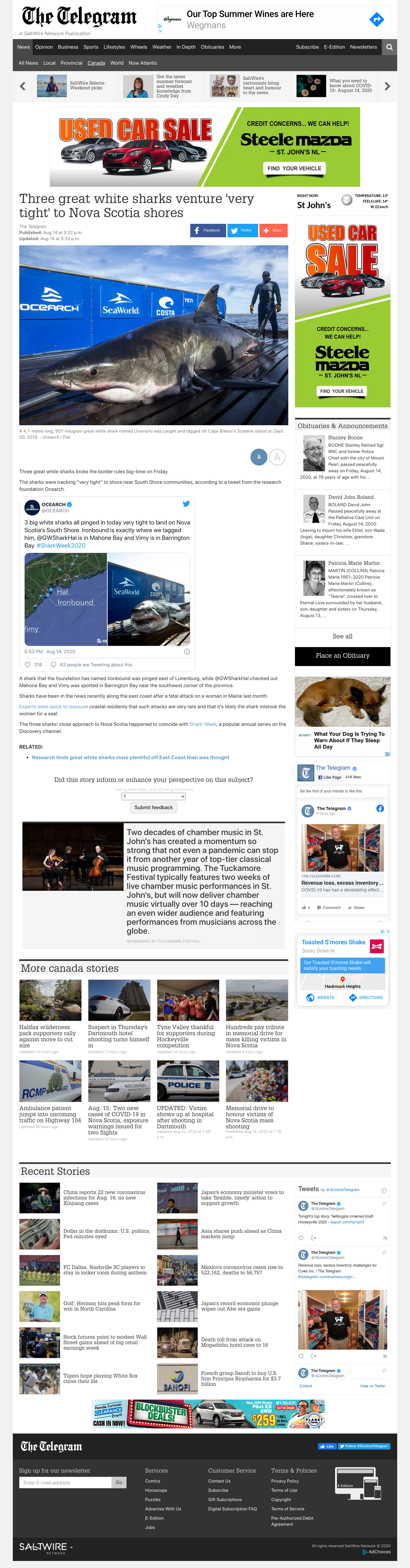 Three great white sharks broke the border rules big-time on Friday. The sharks were tracking very tight to shore near South Shore communities.