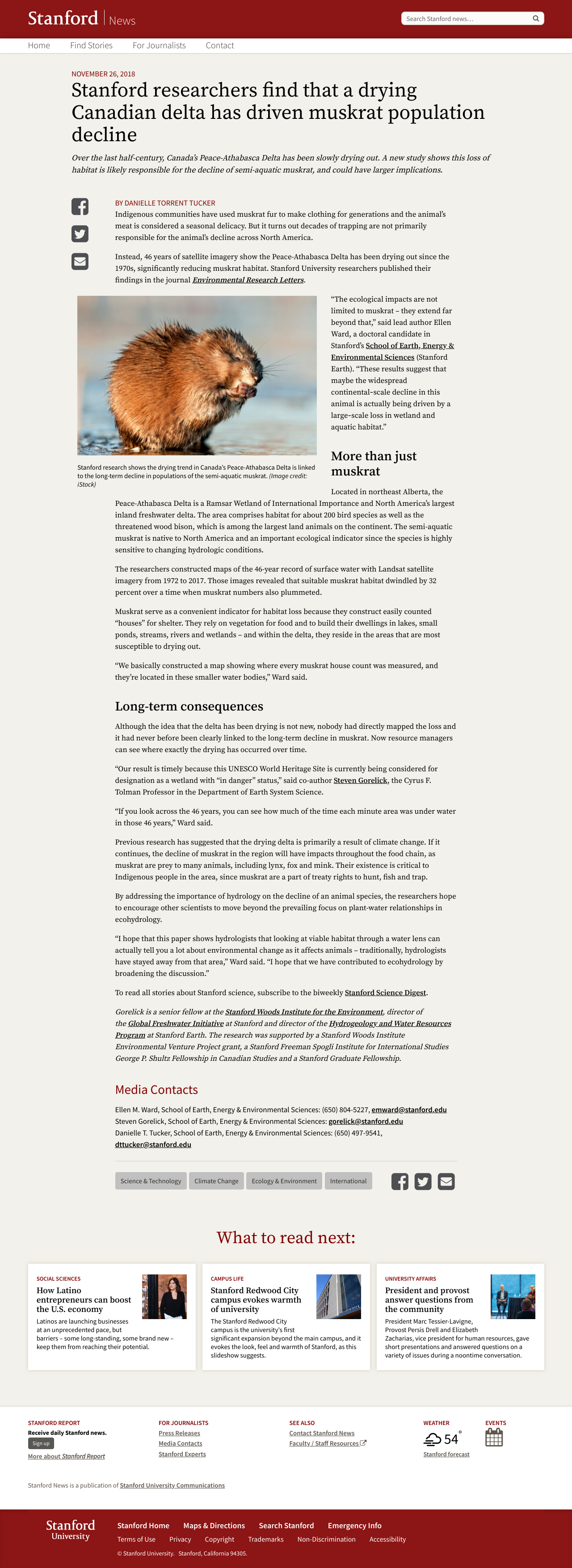 A new study shows loss of habitat in Canada’s Peace-Athabasca Delta is likely responsible for the decline of semi-aquatic muskrat, and could have larger implications.