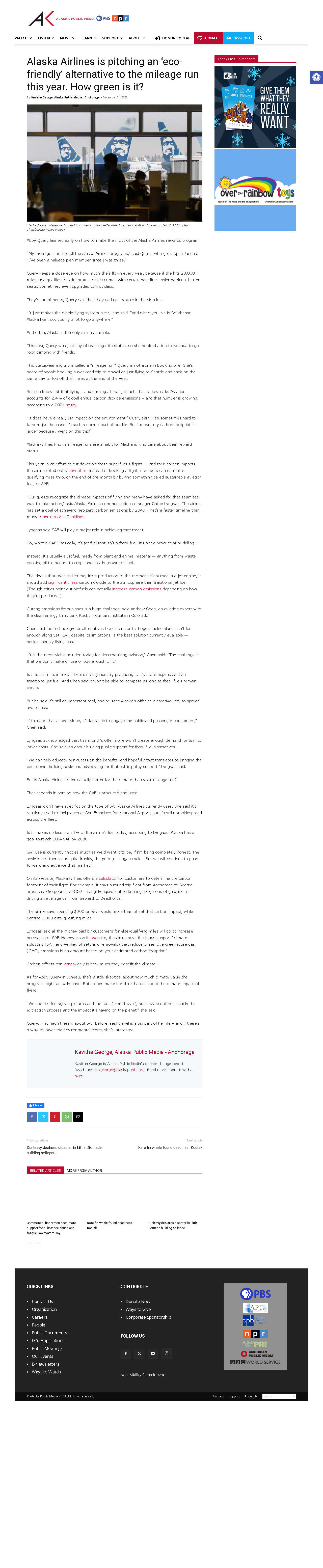 Alaska Airlines is promoting Sustainable Aviation Fuel (SAF) as an eco-friendly alternative to traditional mileage runs, though its effectiveness depends on production methods and it's not yet widely adopted or cost-competitive.