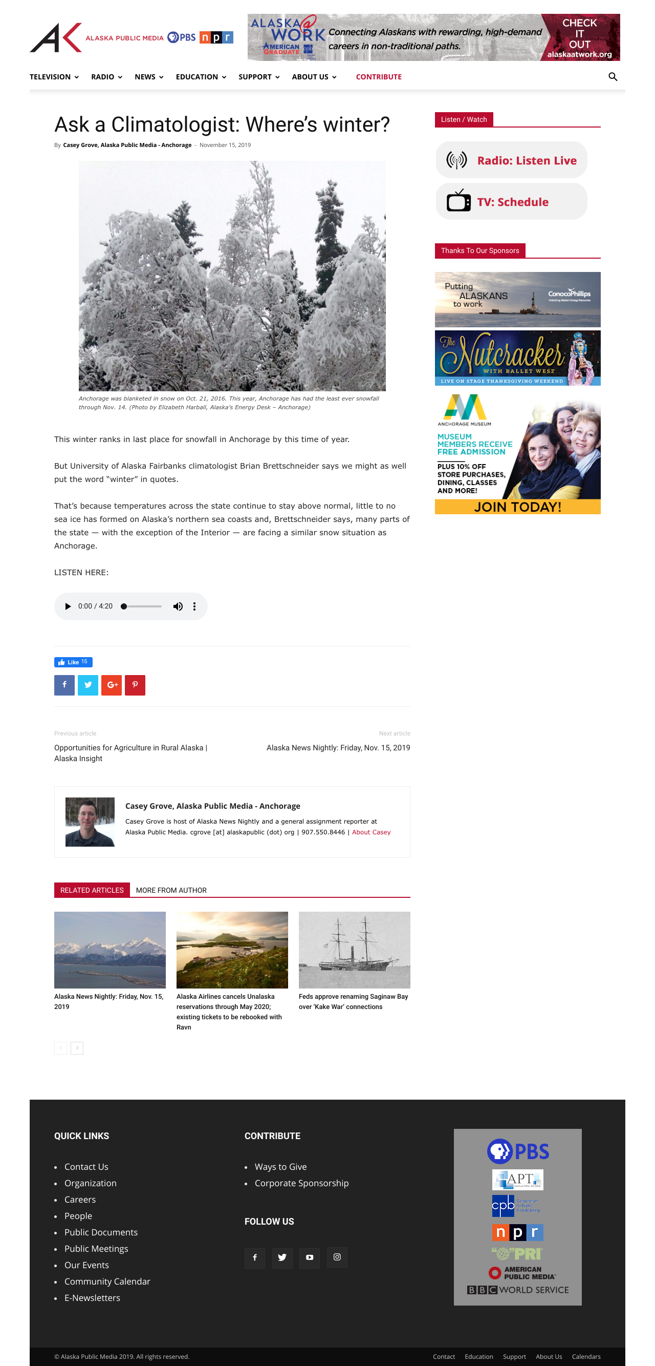 There has been little snowfall, temperatures are above normal and there is little to no sea ice on Alaska's northern coasts.