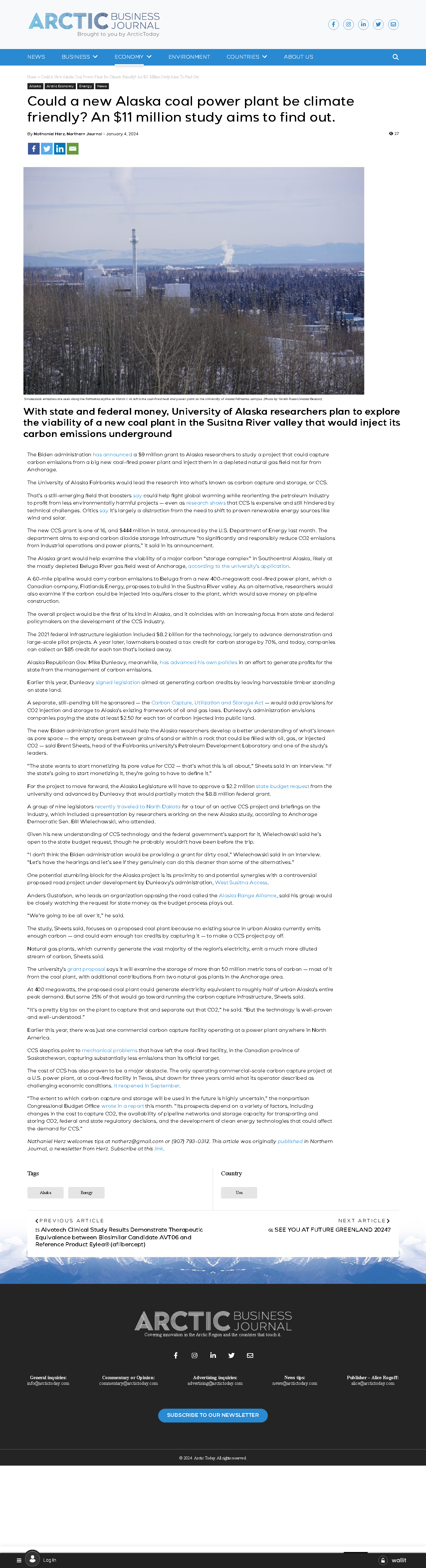An $11 million study, funded by a U.S. Department of Energy grant, will investigate the feasibility of a new coal power plant in Alaska with carbon capture and storage technology.