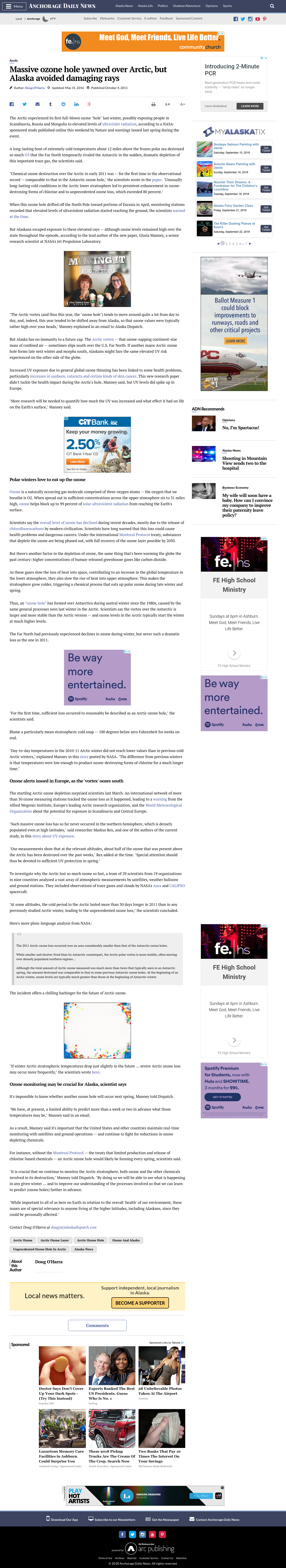 A big chill in the Arctic stratosphere ripped open the biggest ozone hole in Arctic history last winter. But nice blanket of UV-blocking ozone kept Alaska covered up this time.